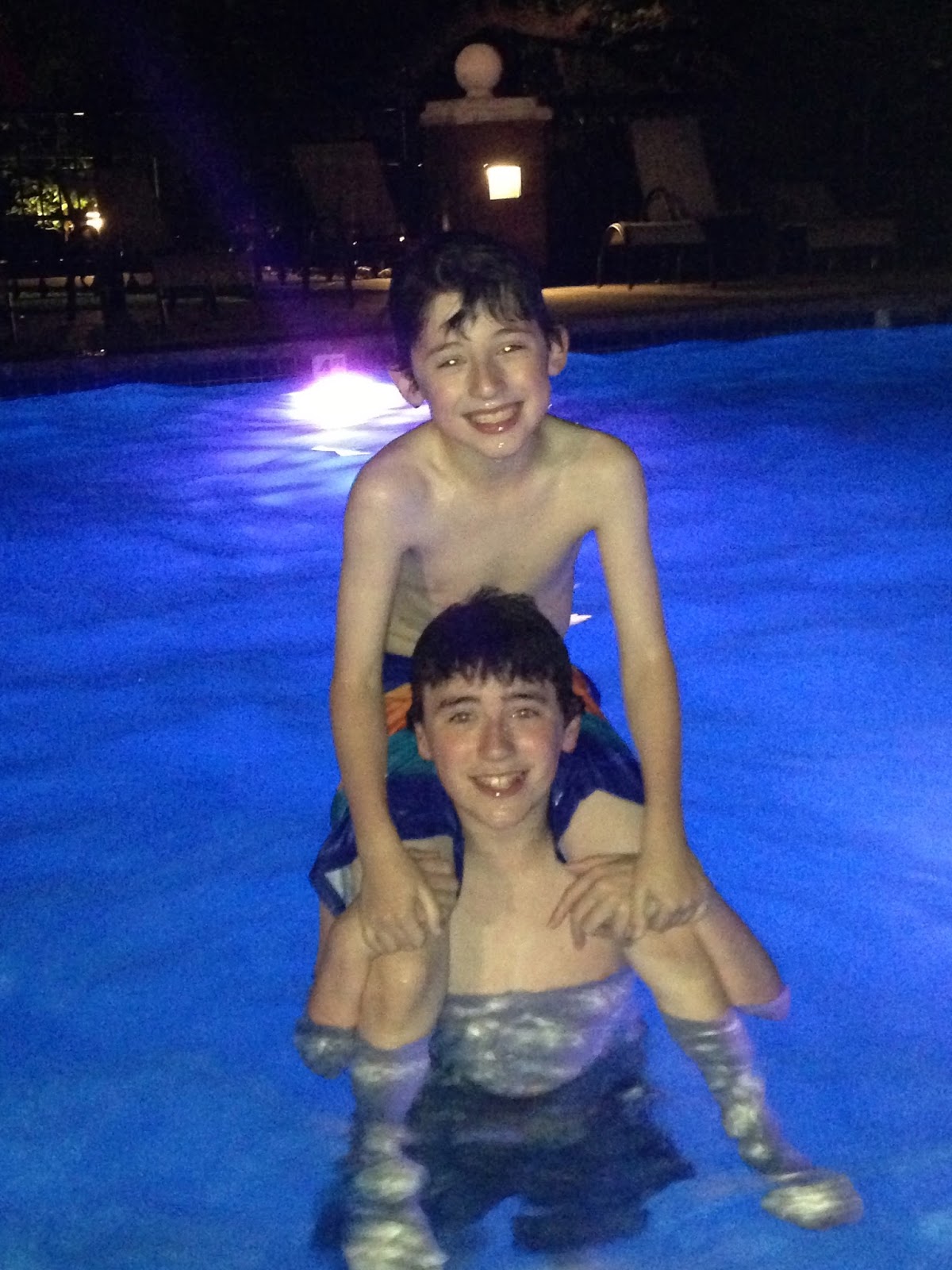 Tuesday: Even though I didn't get home from the ER until 3am, and E still woke up bright and early at 7am, I promised the boys we would go see Monsters University. They posed for this picture in front of Turbo.